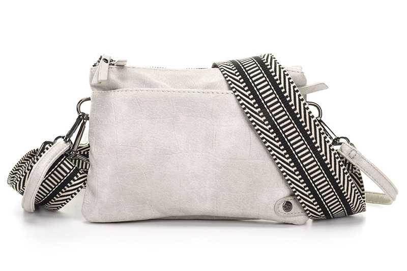 De schoudertas wordt geleverd met twee schouderbanden: een PU schouderband en een geweven brede schouderband.