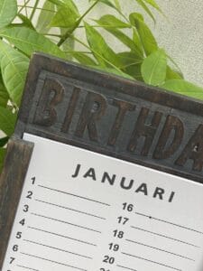 • Houten verjaardagskalender met losse inlegvellen.