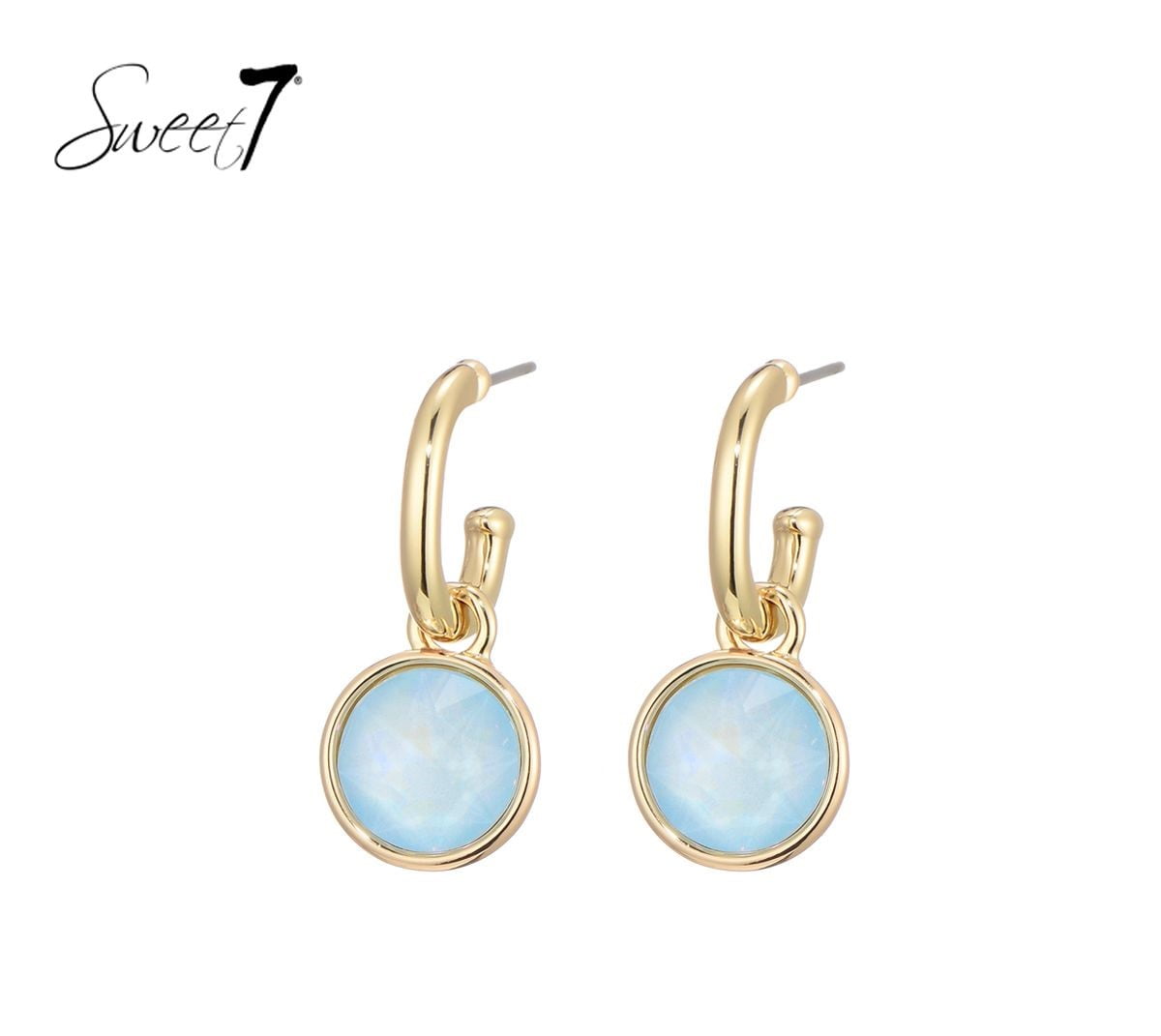 Dit zijn ronde oorbellen met een lichtblauwe diamant.